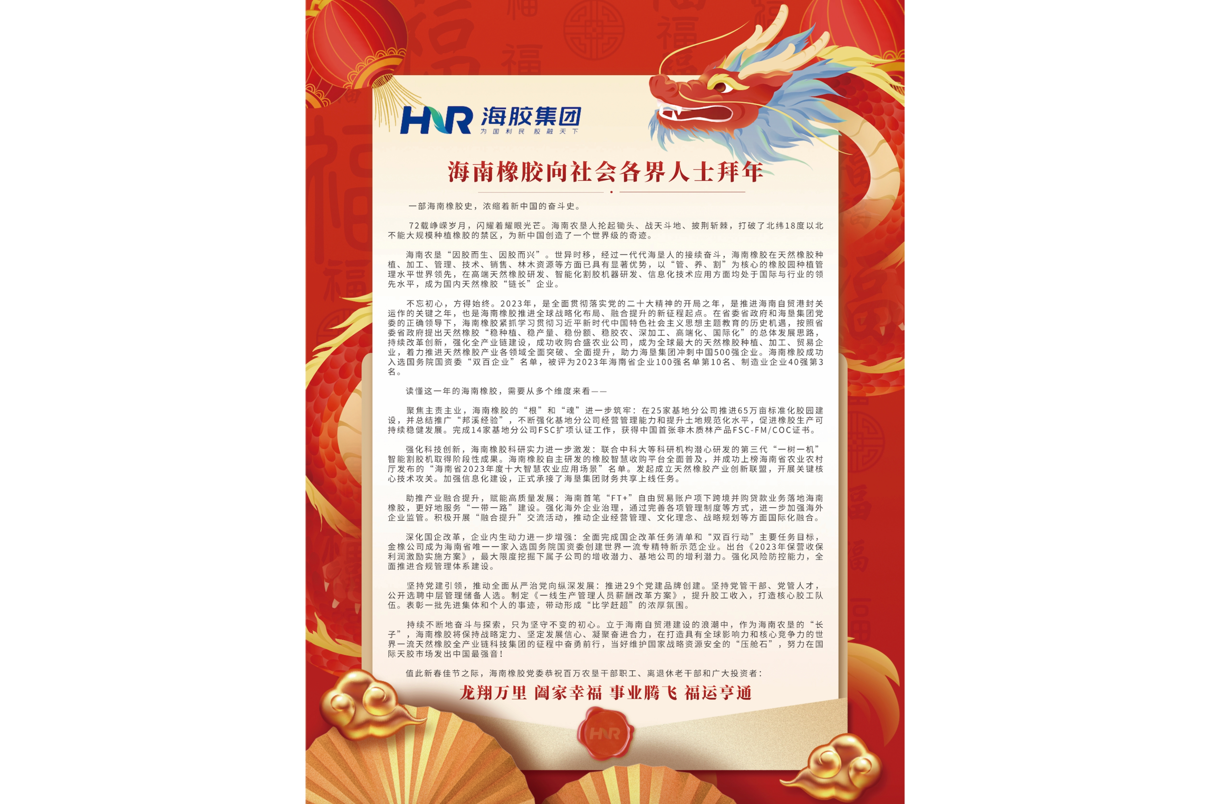 海南橡膠向社會(huì)各界人士拜年