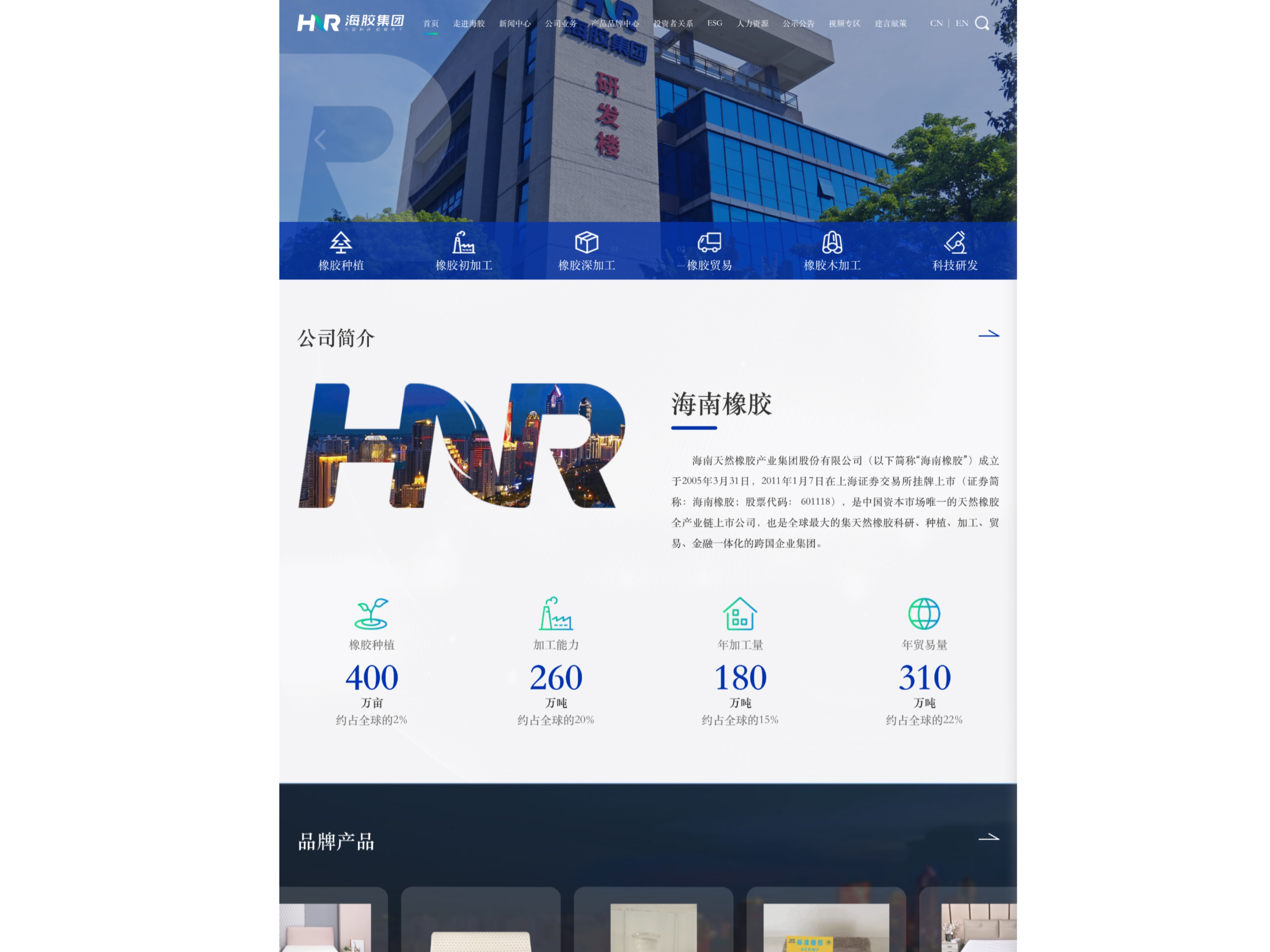 近日,海南天然橡膠產(chǎn)業(yè)集團(tuán)股份有限公司(以下簡(jiǎn)稱(chēng)海南橡膠)官網(wǎng)升級(jí)上線。新版官網(wǎng)界面風(fēng)格更為簡(jiǎn)潔清新,各項(xiàng)功能更加清晰、便捷,并新增了英文版閱讀體驗(yàn),推動(dòng)企業(yè)形象提升及品牌建設(shè)工作,擴(kuò)大品牌影響力。全新升級(jí)的海南橡膠官網(wǎng)(http:wwwhirubcn)以純白和深藍(lán)為主色調(diào),色調(diào)更為明快、清新,以橡膠全產(chǎn)業(yè)鏈為展示思路