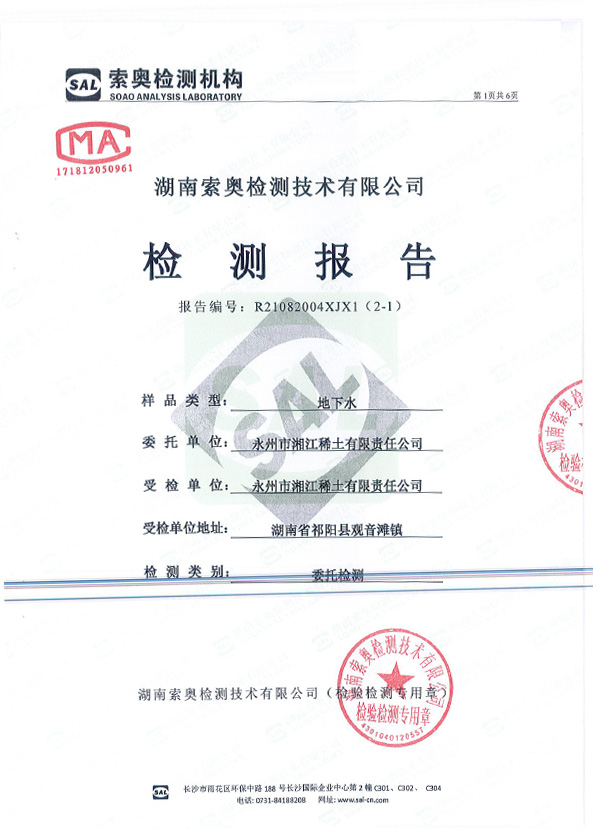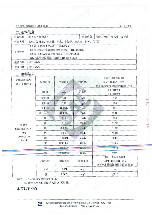 (地下水)檢測報告公示
